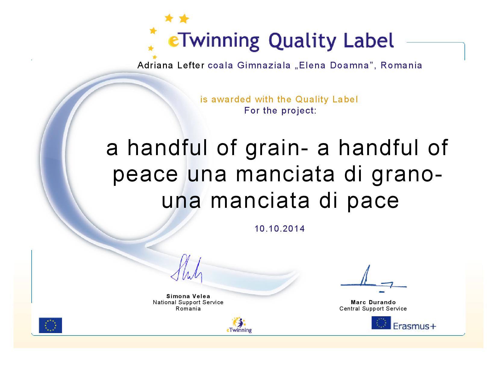 eTwinning Label (Mititelu Valerica și Șerban Gina