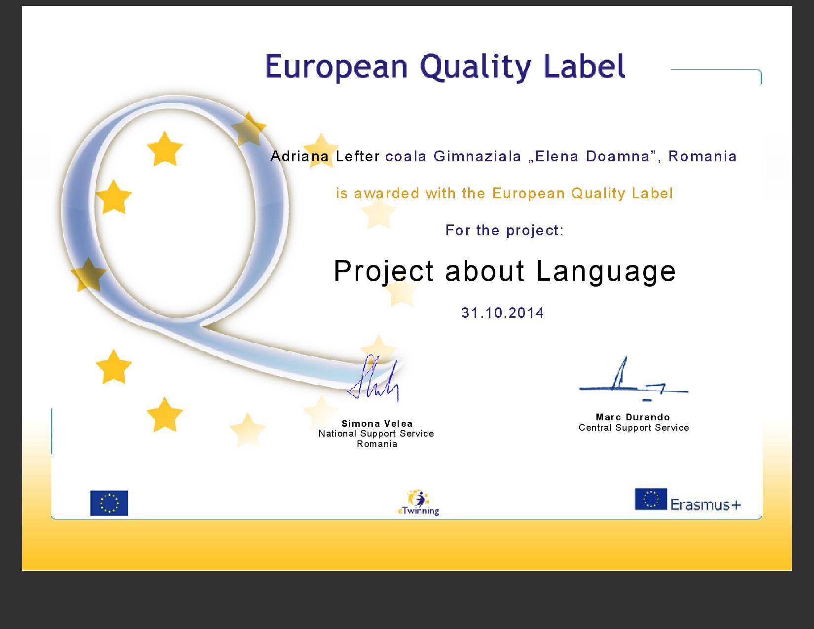 Certificat calitate Lefter Adriana