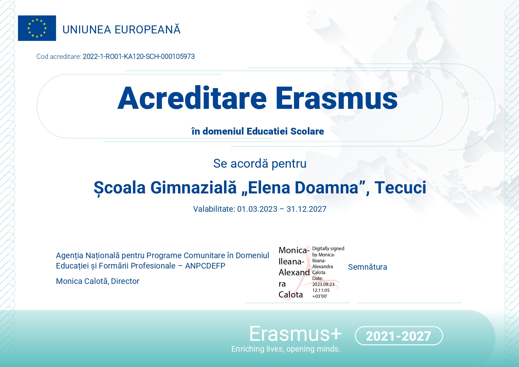 Erasmus+ Acreditare, cod: 2022-1-RO01-KA120-SCH-000105973