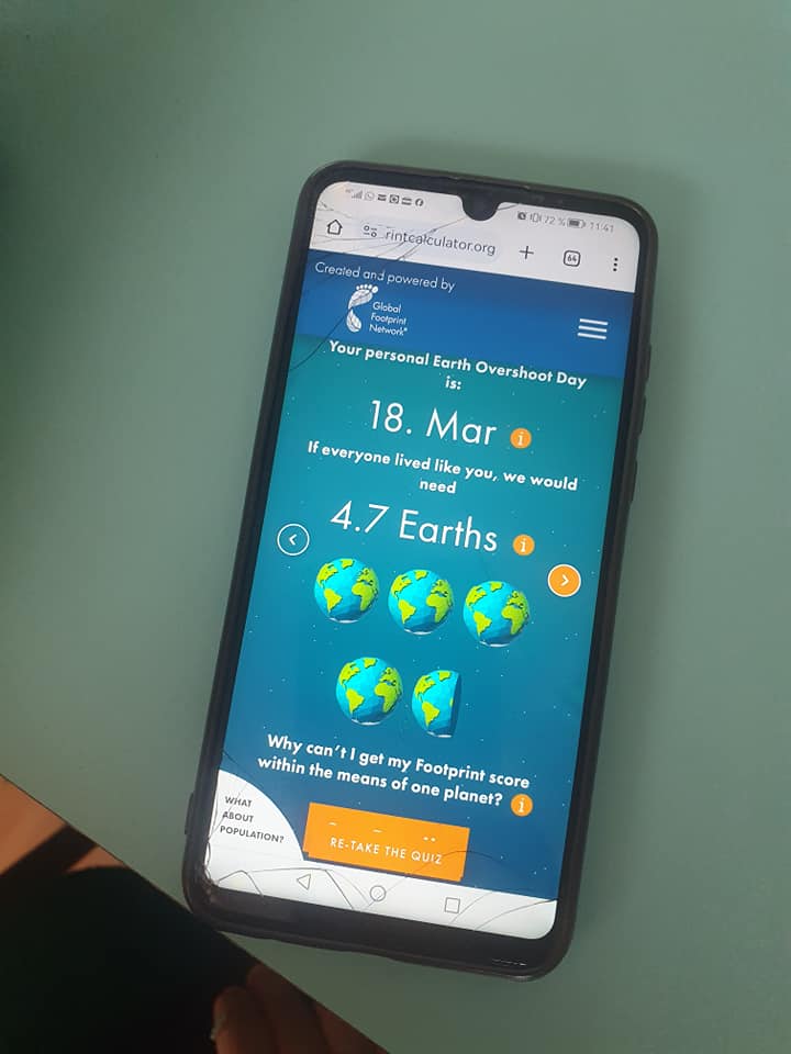 Folosind aplicații online pentru identificarea amprentei de carbon, a amprentei de apa participanții au descoperit cat de mult afectează comportamentul oamenilor viata planetei.