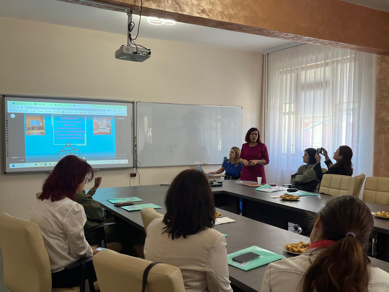 Participarea la cursurile de formare, Activitatea de Job Shadowing, Mobilitatea elevilor si rezultatele proiectului 2023-2024 au fost diseminate in cadrul Cercului Metodic al Responsabililor de Proiecte Europene.