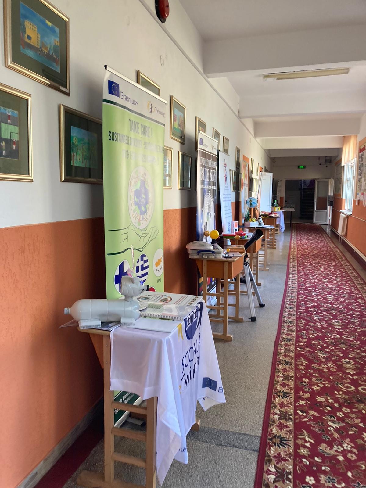 În mod colaborativ elevii au realizat sacoșe de bumbac scrise cu numele ambelor scoli și cu mesaje de protejare a Pământului. Echipa din Romania a primit în dar cutii și sticle pentru pachetul de scoala, pentru a indemna la reducerea utilizării ambalajelor de plastic.Evaluarea mobilitatii a fost realizata printr- un joc interactiv în Kahoot la care a participat echipa din România si elevii din clasele a V- a și a VI- a din scoala gazda.
