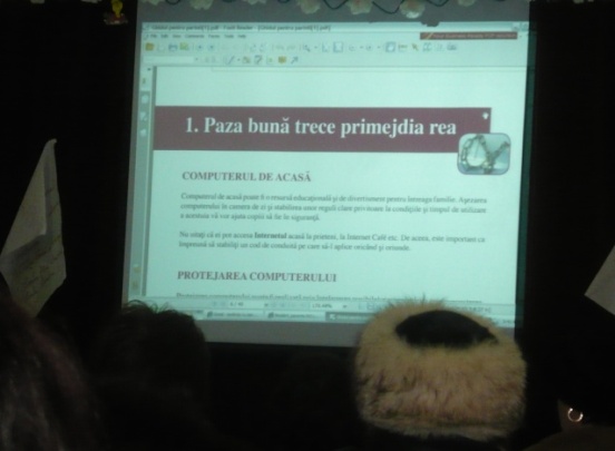 În cadrul opționalului am organizat cu elevii o activitate privind siguranța pe internet , chiar dacă de la începutul opționalului am precizat modalitățile de utilizare a resurselor web pentru siguranță și informare corectă. De asemenea , am informat și părinții în cadrul unei ședințe cu tematica siguranței pe internet a copilului și despre moduri de securizare a computerului ori de verificare site-urilor vizitate de copii.